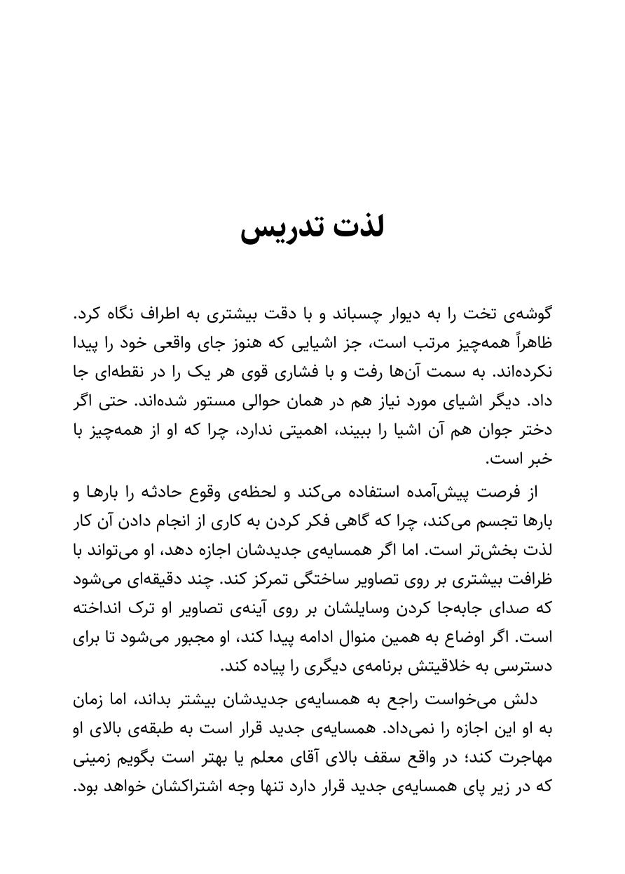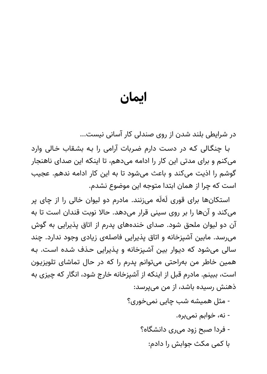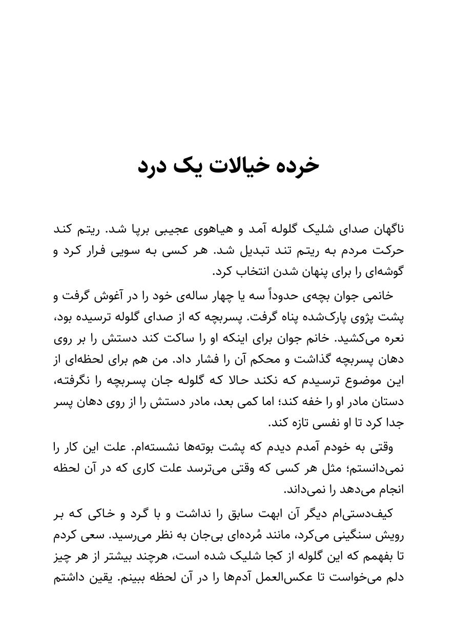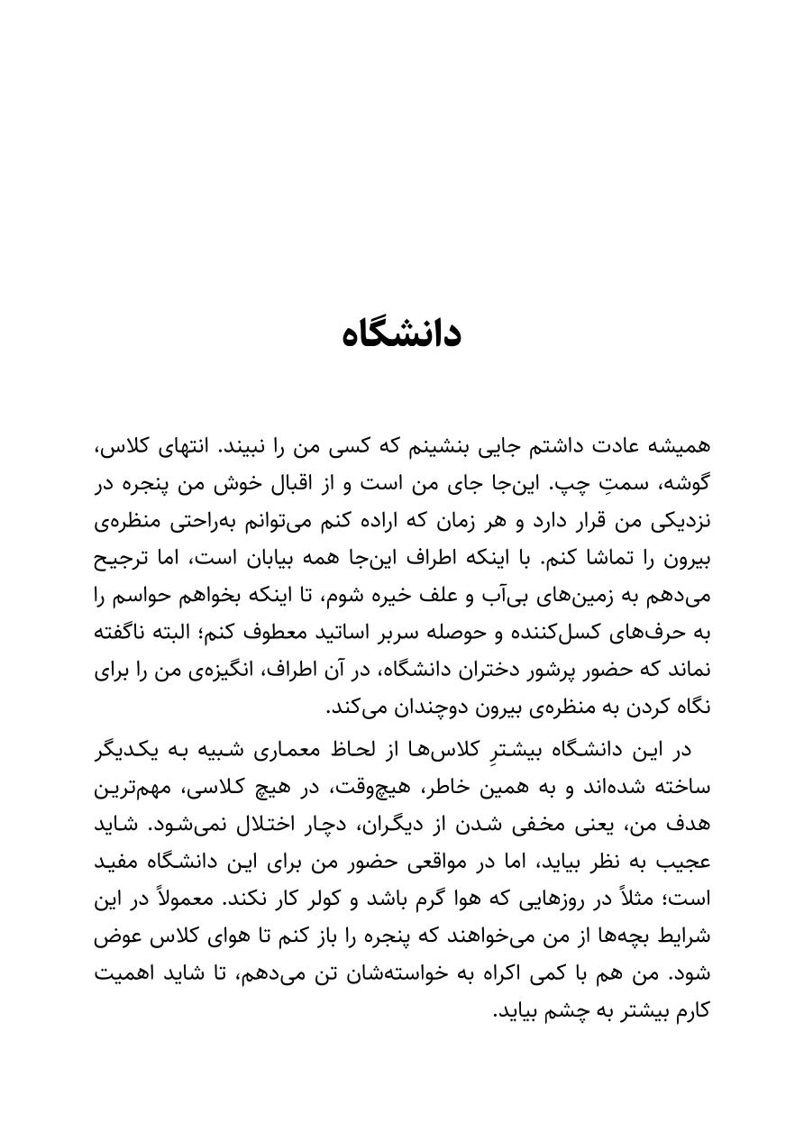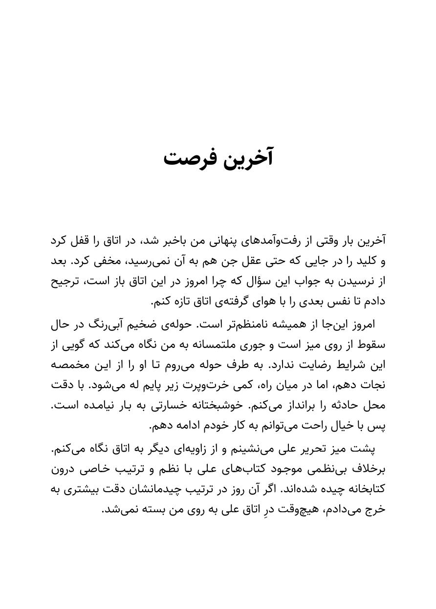 از متن کتاب: حیف که نمیتوانم زنده بمانم، وگرنه هیچوقت آن دختر را از خودم ناامید نمیکردم.به خانهمان نزدیکتر شدم و میدانستم این آخرین باری است که میتوانم در سفید و رنگپریدهاش را تماشا کنم. دلتنگی همهی وجودم را فرا گرفت. هیچوقت فکر نمیکردم که روزی قرار است دلم برای چنین تصویر مضحکی تنگ شود.